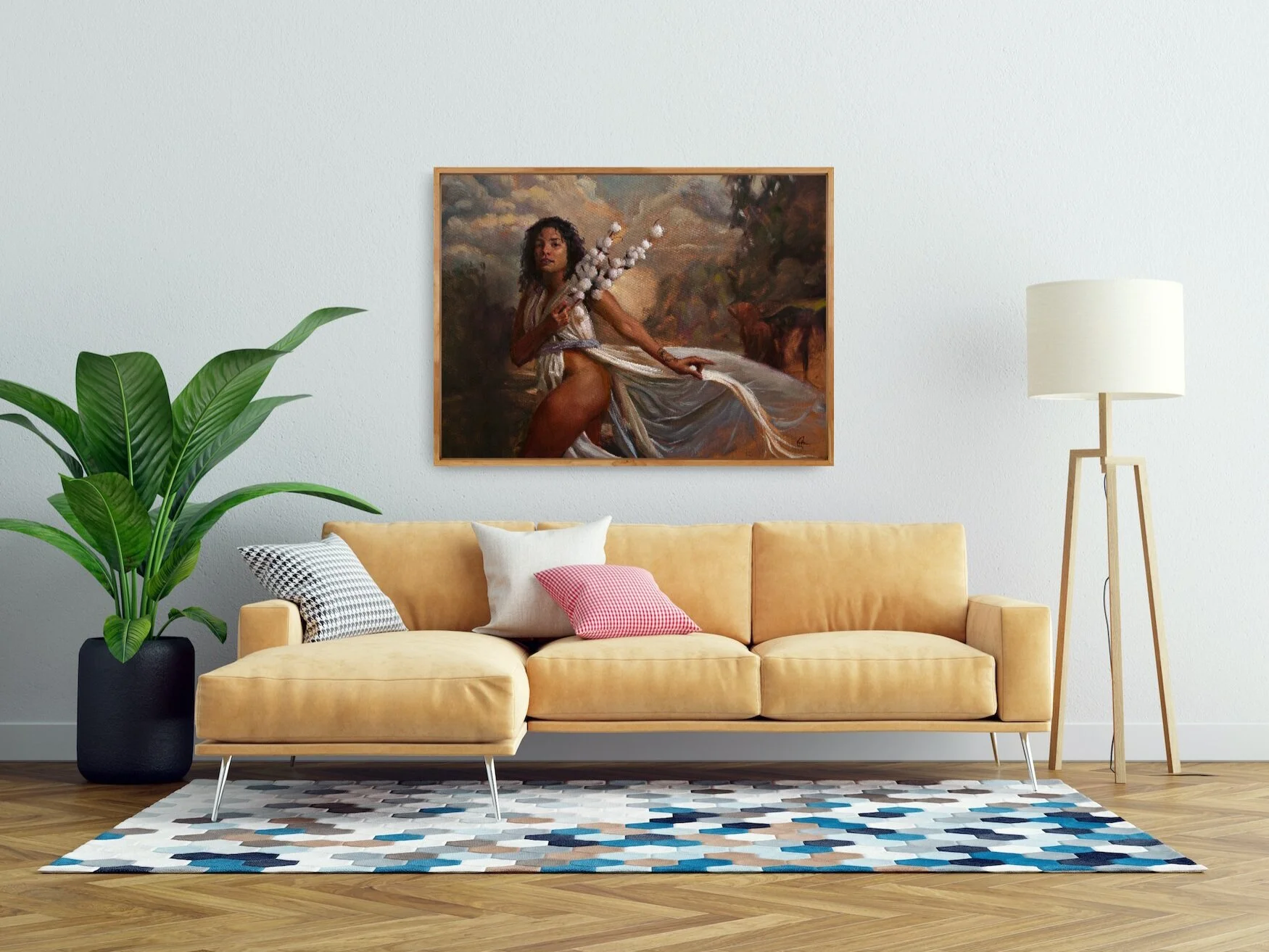 Full body or waist up Portrait: A refined look with a full background. This package includes an initial photoshoot, original painting with optional framing, and a high quality digital image of the finished portrait.
